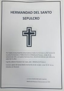 Fallecimiento de nuestro hermano Óscar Morencia Castaño 20 de octubre de 2025 No hay comentarios La Hermandad del Santo Sepulcro comunica con profundo pesar el fallecimiento de nuestro hermano Don Óscar Morencia Castaño, ocurrido en Medina de Rioseco el día leer más »
