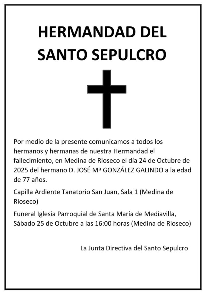 Hoy el lazo que nos une en esta hermandad se ha vuelto negro. Hoy es un día triste para todos los que formamos esta cofradía, nos ha dejado el hermano José María González Galindo El cielo le está esperando, ha cogido ese tren que hasta allí le llevara, ese mismo que todos cogeremos algún día.